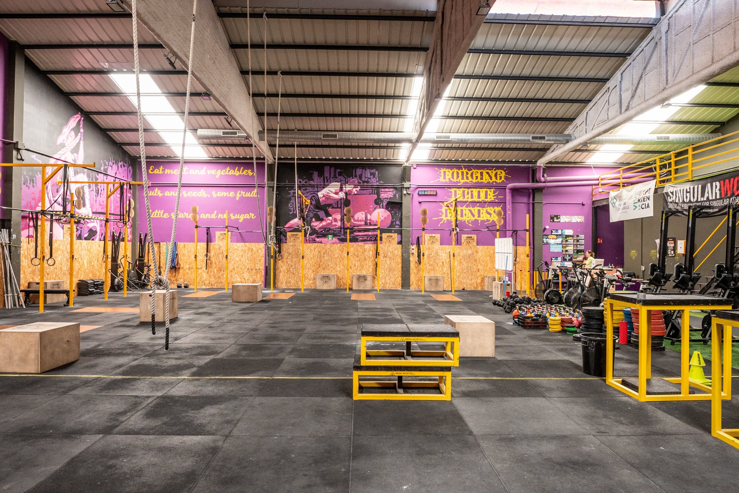 Descripción: Nave industrial reconvertida en un centro de entrenamiento para la práctica deportiva del Crossfit para el Grupo Box Connection. Además de la reforma y acondicionamiento de la edificación, se han añadido a los espacios destinados a zonas de entrenamiento otros servicios complementarios como vestuarios, recepción, sala de fisioterapia o zona de descanso.