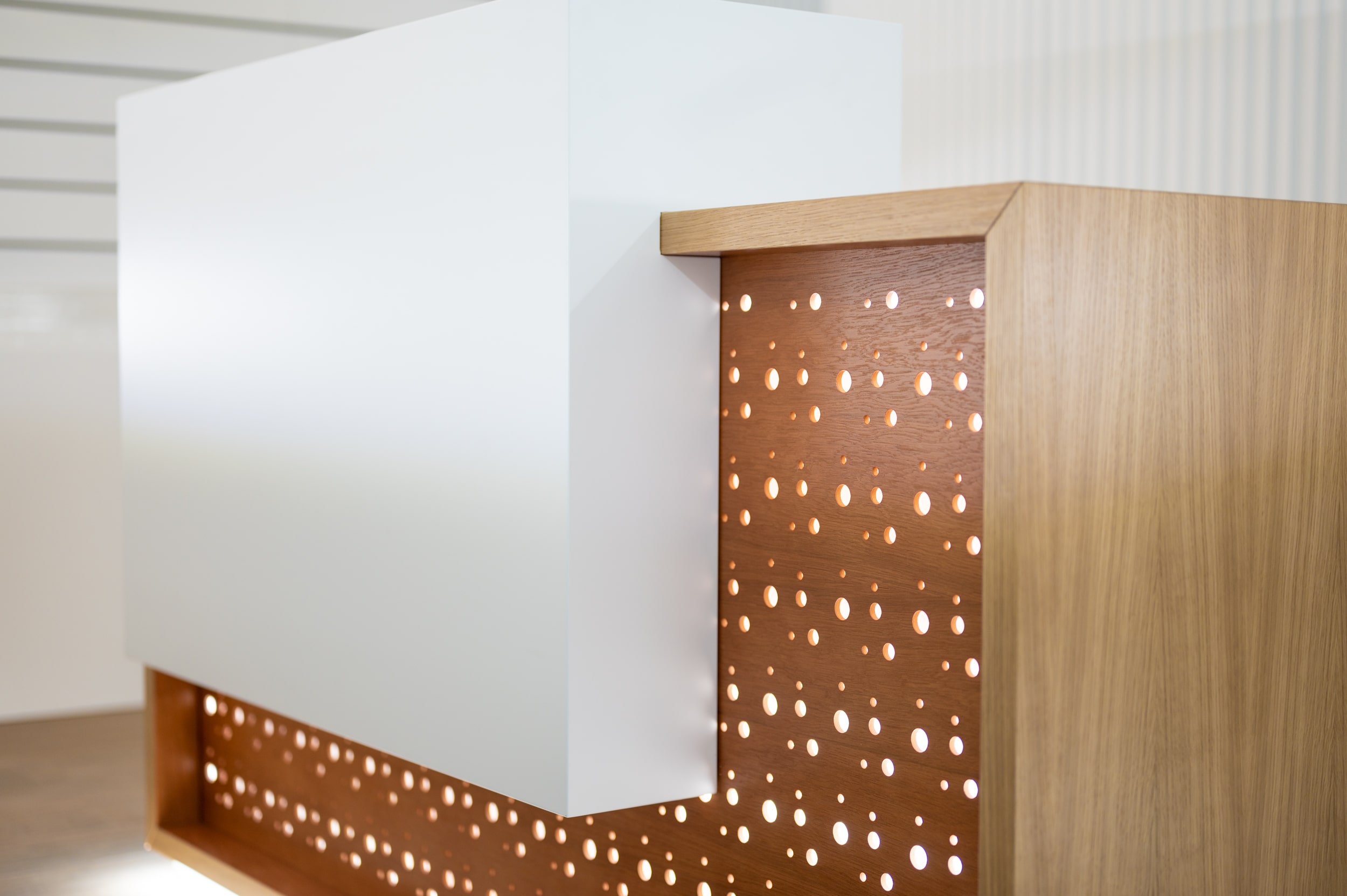 Se deseaba eliminar toda intrusión de colores y elementos no acordes al moodboard corporativo para reforzar su identidad ante el usuario. Los muebles homogenizan el soporte y penetran hasta el final de la tienda para aumentar la sensación de amplitud. Los elementos discordantes aportan un valor extra: acercando el lujo y la calidez a esta vía comercial.